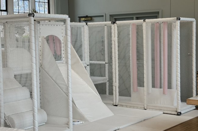 - A pastel soft play frame and ball pit