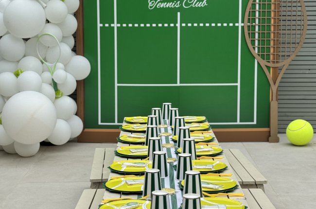 - Tables and chairs as well as tableware styling (co-ordinated plates, napkins, cups ).